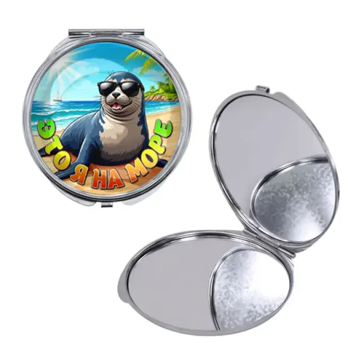 Круглое складное зеркало, цвет серебро, Это я на море C0332016