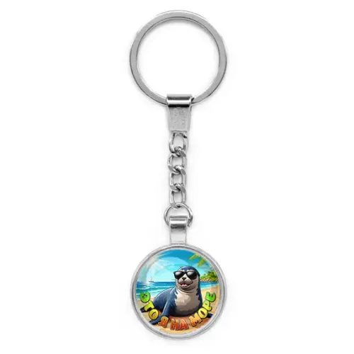Круглый брелок, цвет серебро, с цепочкой, Это я на море C0332022