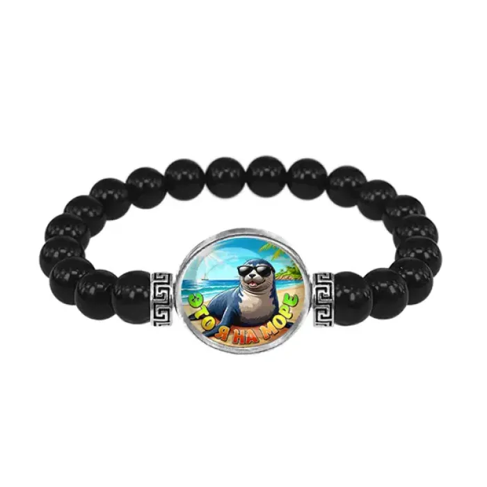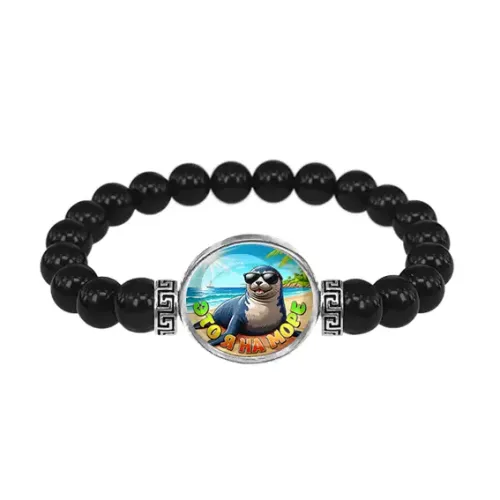 Размеры и комплектация: Диаметр бусин: 8 мм. Диаметр изображения: 20 мм. Браслет на эластичной основе.