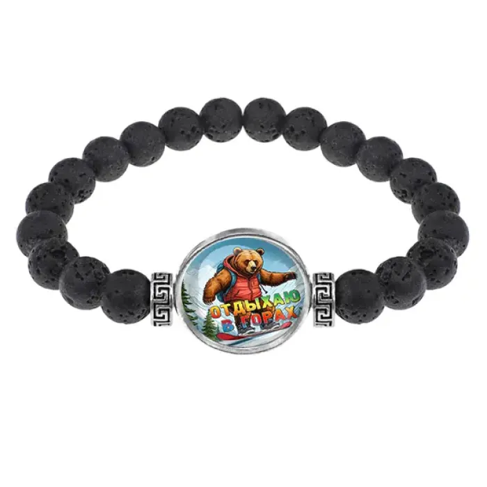 Аромабраслет из натуральной лавы с изображением под выпуклой стеклянной линзой.