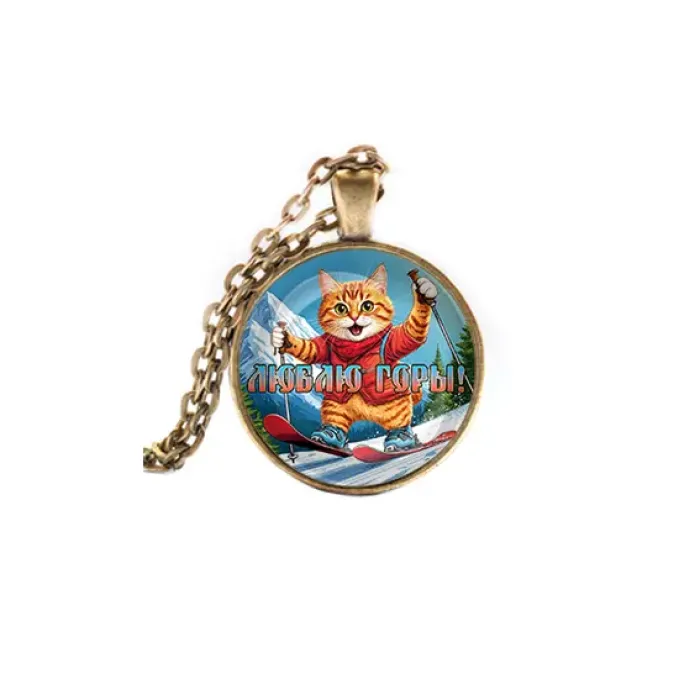 Материал и изготовление: Бижутерный сплав с покрытием под бронзу, выпуклая стеклянная линза, застёжка типа лобстер.