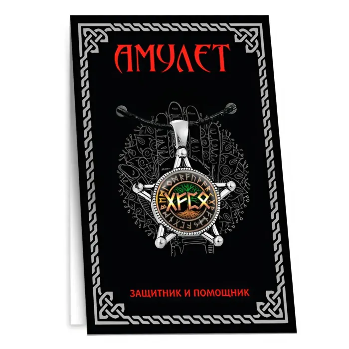 Размеры и комплектация: Размер амулета 33х43 мм, диаметр изображения 20 мм. Упаковка включает полипропиленовый пакет, подложку и этикетку.