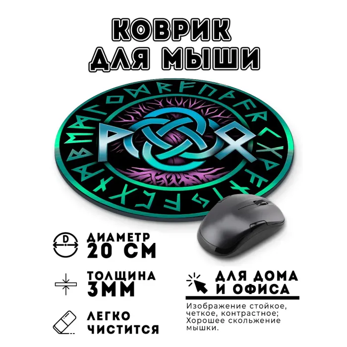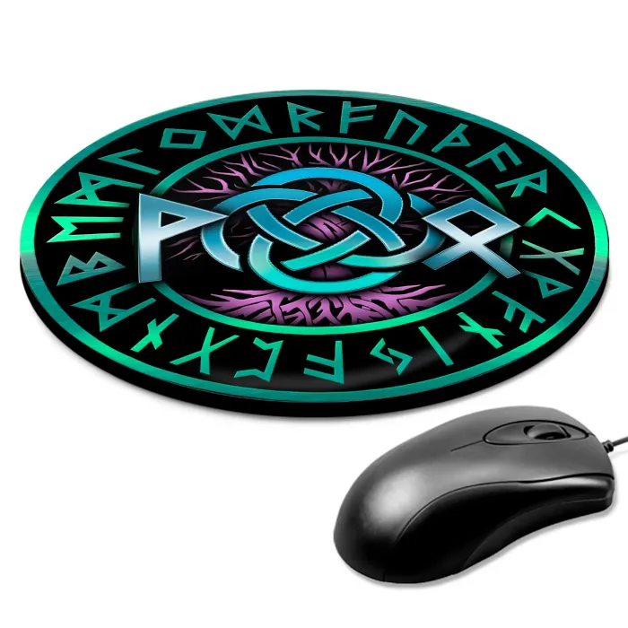Коврик для мыши с изображением рунических формул и кельтского узла.