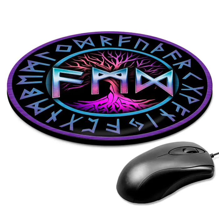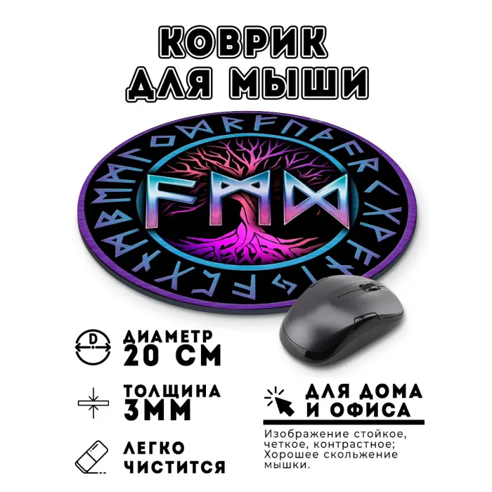 Коврик для мыши с нанесёнными руническими формулами, предназначенный для использования в качестве сувенира или оберега.