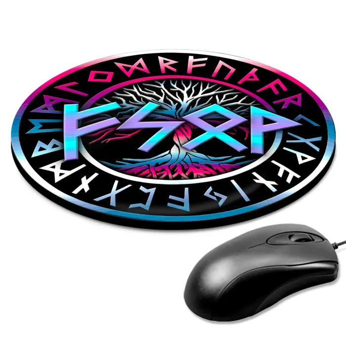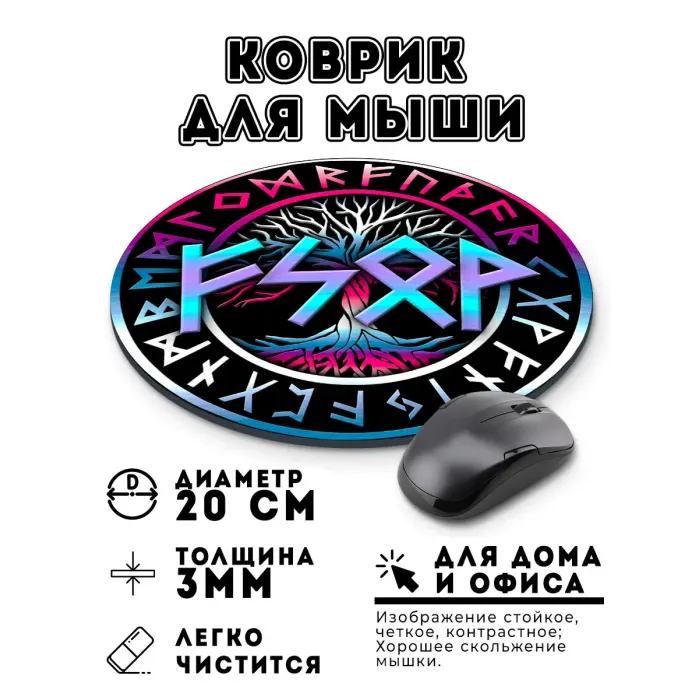 Коврик для мыши с нанесённой рунической формулой. Диаметр 20 см, толщина 3 мм.