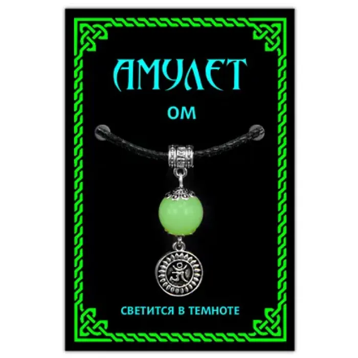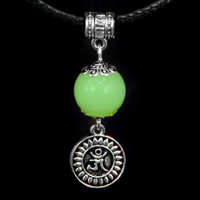 Светящийся амулет с символом Ом. Сувенирный аксессуар, заряжающийся от света.