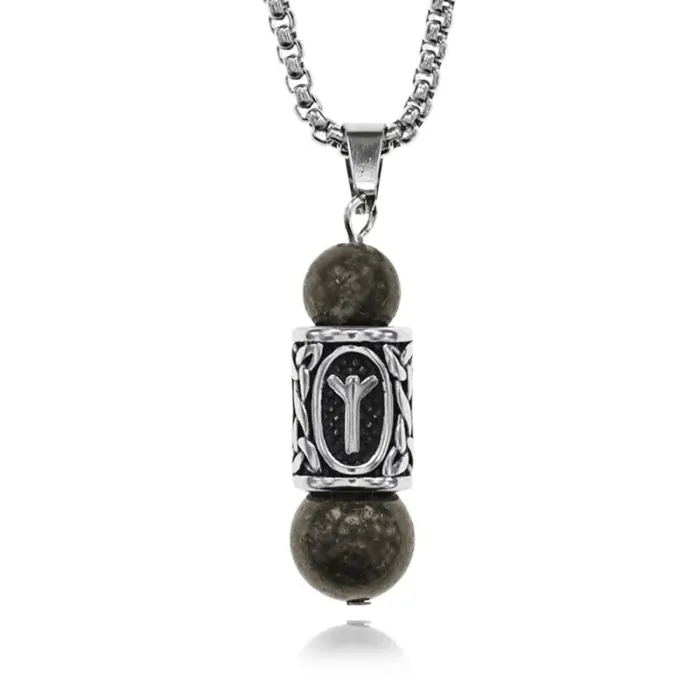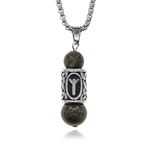Кулон-амулет с руной Мир из нержавеющей стали, Унакит KULC-02