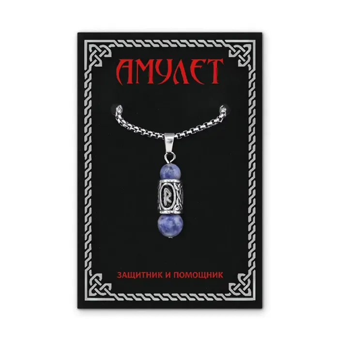Кулон-амулет с руной Радуга из нержавеющей стали, Содалит KULC-08