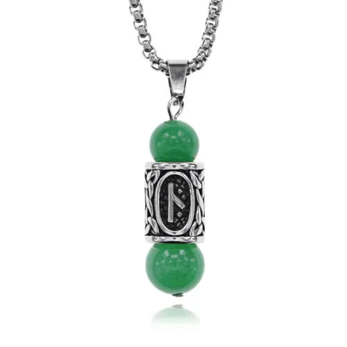 Кулон-амулет с руной Нужда из нержавеющей стали, Нефрит KULC-10