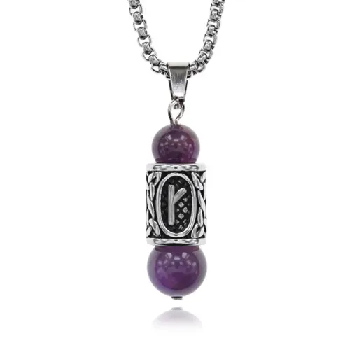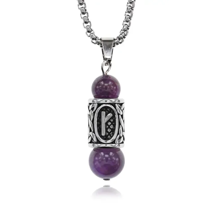 Кулон-амулет с руной Крада из нержавеющей стали, Аметист KULC-12