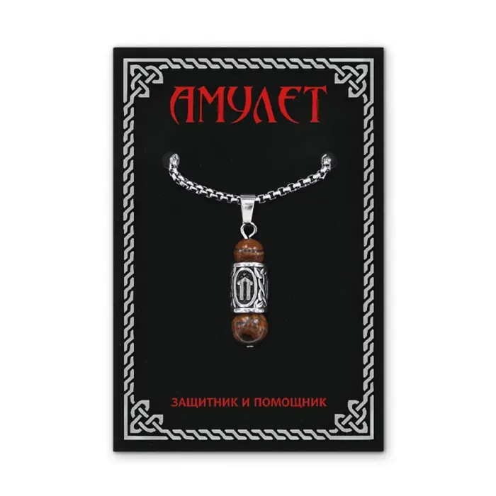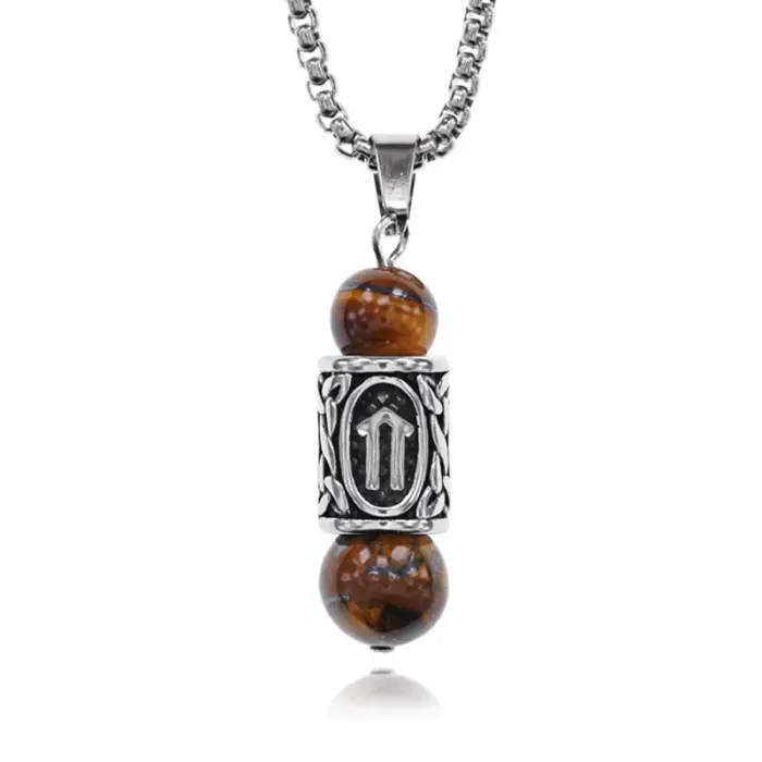 Кулон-амулет с руной Ветер из нержавеющей стали, Тигровый глаз KULC-18