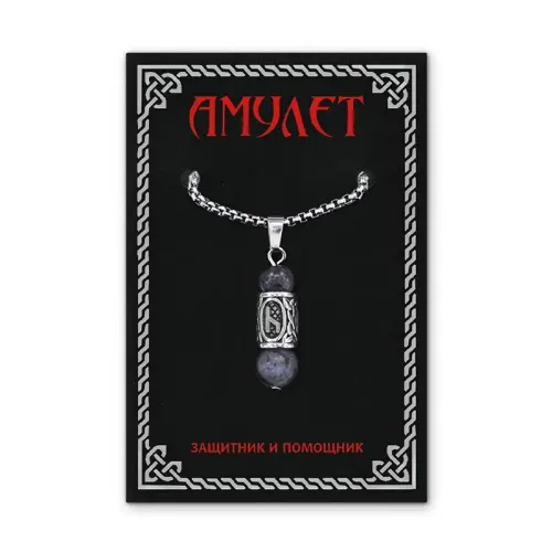 Кулон-амулет из нержавеющей стали с натуральным камнем лабрадор и символом руны Уд.