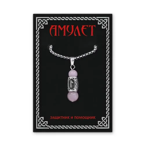 Кулон-амулет с руной Леля из нержавеющей стали, Розовый кварц KULC-24