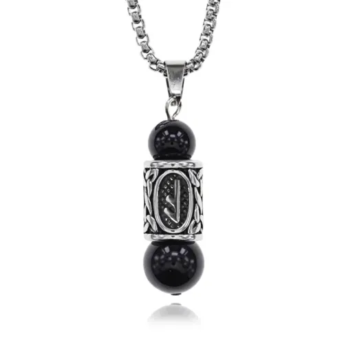 Кулон-амулет с руной Есть из нержавеющей стали и чёрного агата.