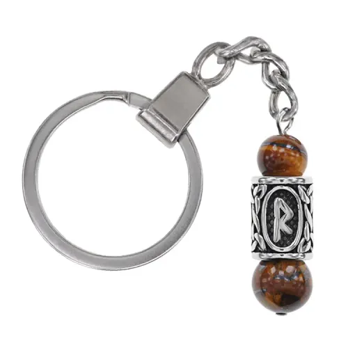Брелок-амулет с руной Радуга из нержавеющей стали и натурального камня Тигровый глаз.