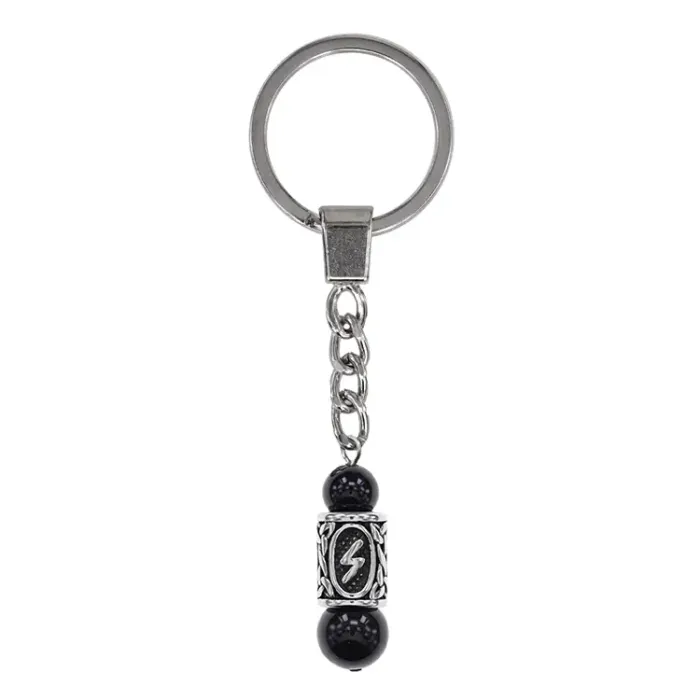 Брелок-амулет с руной Сила из нержавеющей стали, Черный агат BKC-16