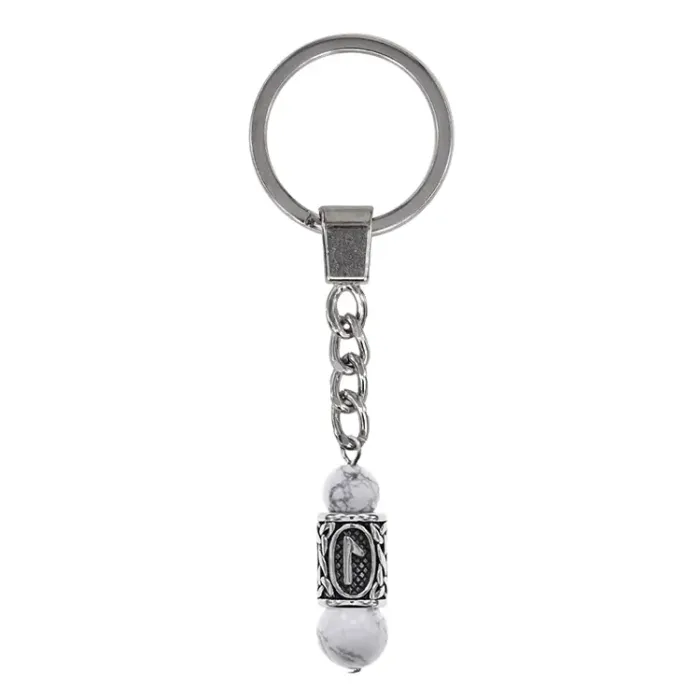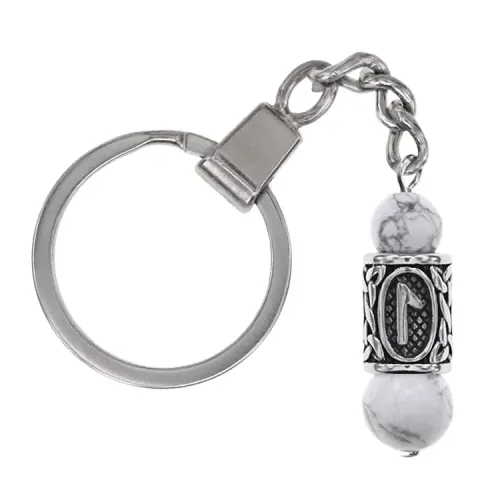 Брелок-амулет с руной Леля из нержавеющей стали и натурального камня кахолонг.