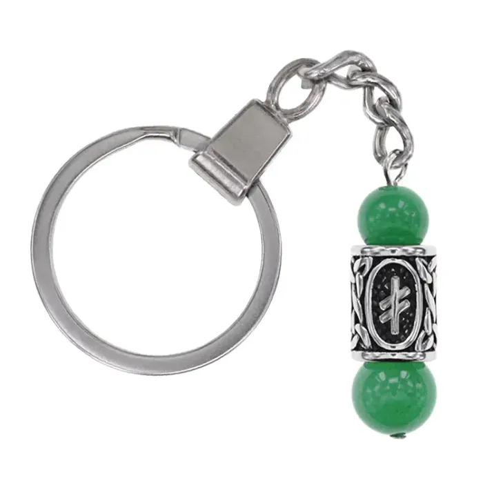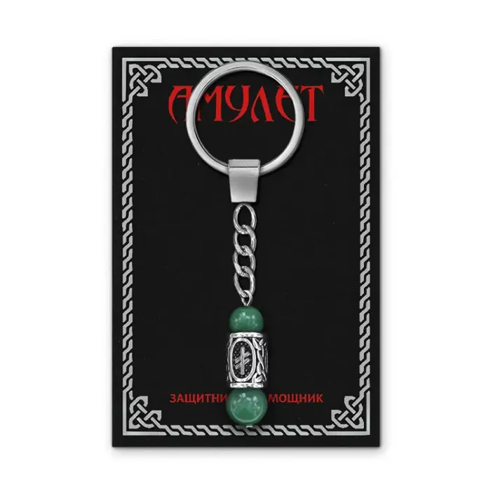 Брелок-амулет с руной Опора из нержавеющей стали, Нефрит BKC-25