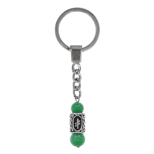 Брелок-амулет с руной Опора из нержавеющей стали с бусинами из натурального нефрита.