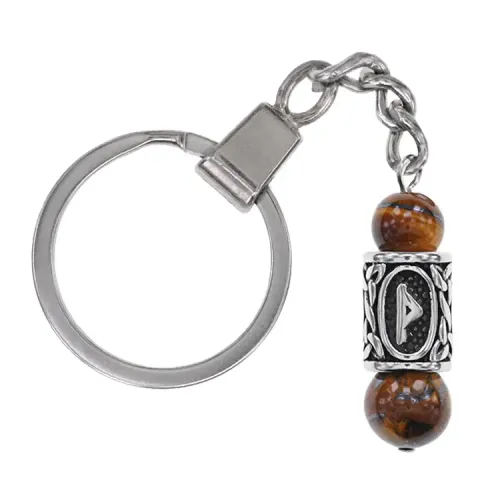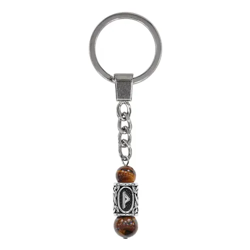 Брелок-амулет с руной Даждьбог из нержавеющей стали, Тигровый глаз BKC-27