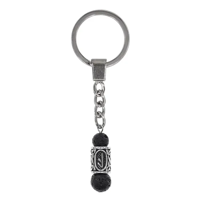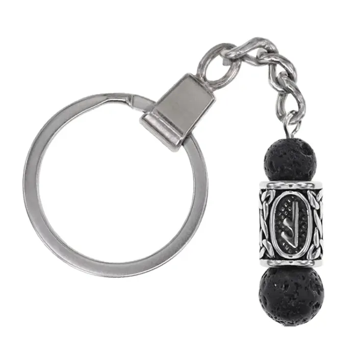 Брелок-амулет с руной Есть из нержавеющей стали и натурального камня лавы.