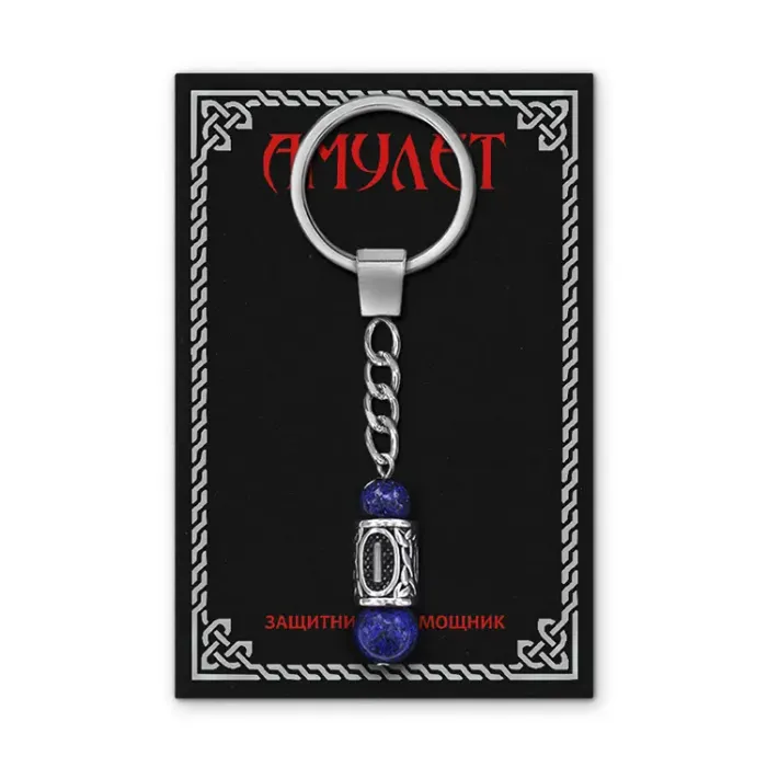 Брелок-амулет с руной Исток из нержавеющей стали и натурального лазурита.