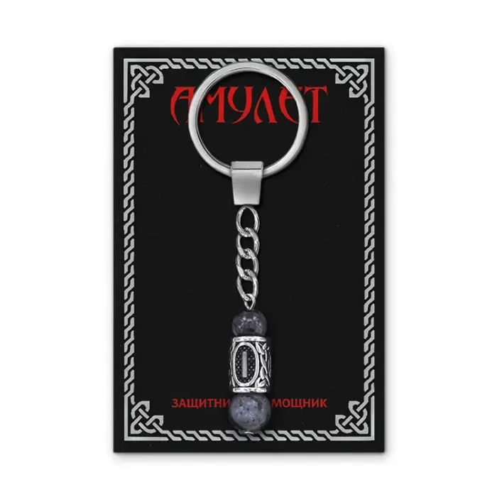 Брелок-амулет с руной Исток из нержавеющей стали и натурального камня лабрадор.