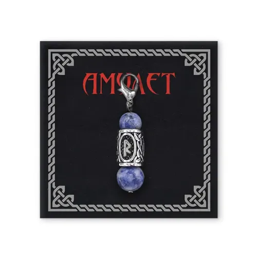 Брелок-амулет с руной Радуга из нержавеющей стали и натурального камня содалит.