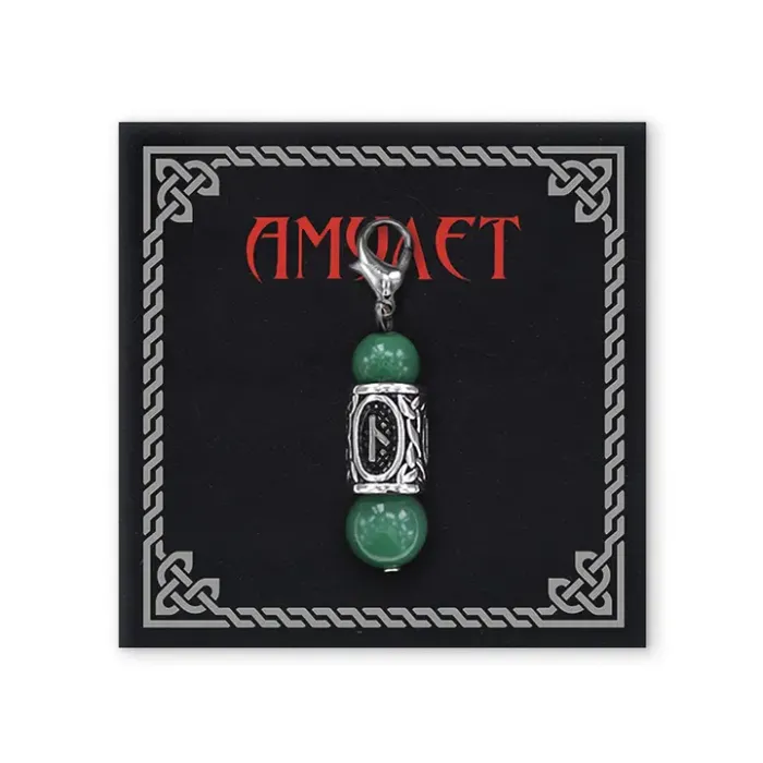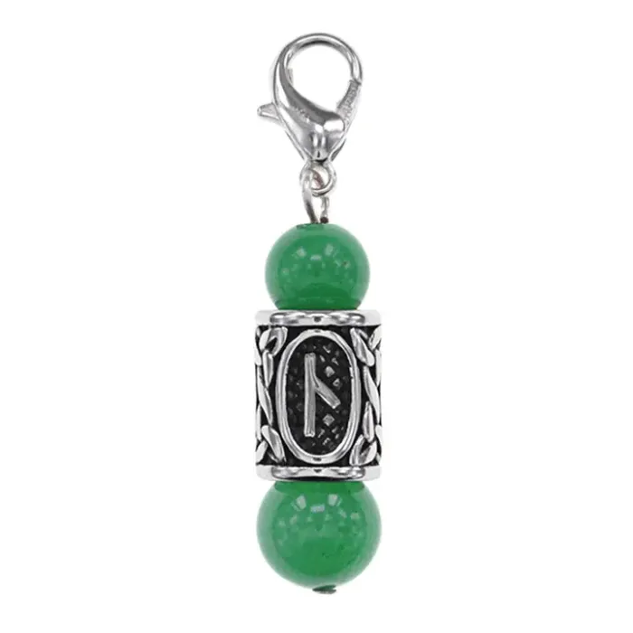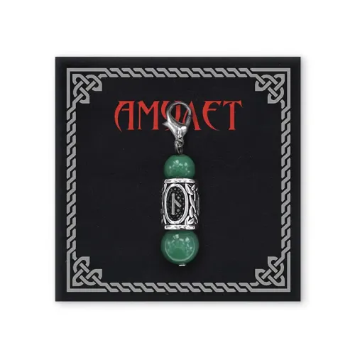 Брелок-амулет с руной Нужда из нержавеющей стали, Нефрит BKC1-10
