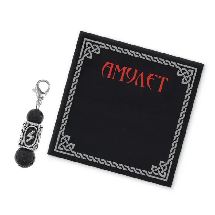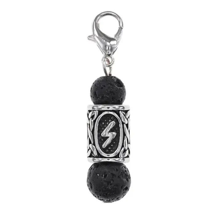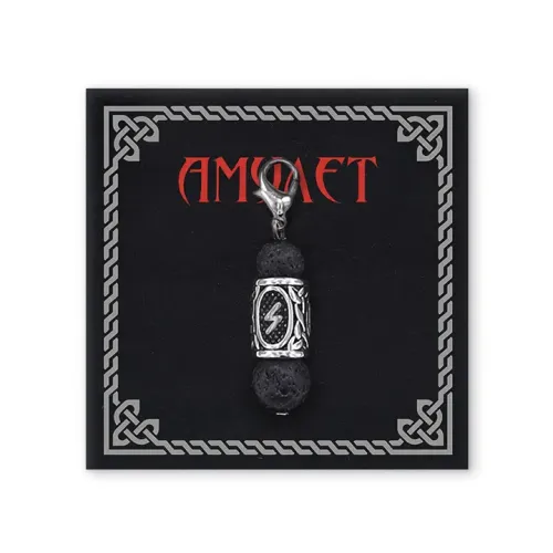 Брелок-амулет с руной Сила. Изготовлен из нержавеющей стали и натурального камня лава.