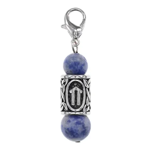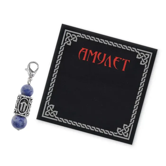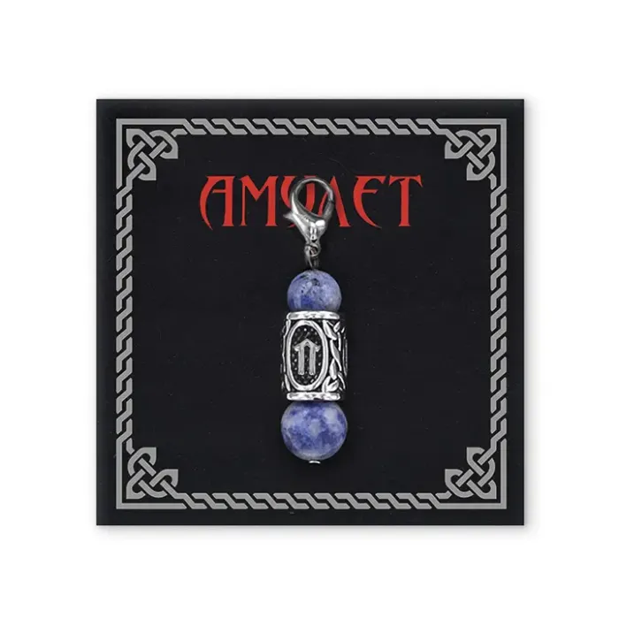 Брелок-амулет с руной Ветер из нержавеющей стали и натурального камня содалита.