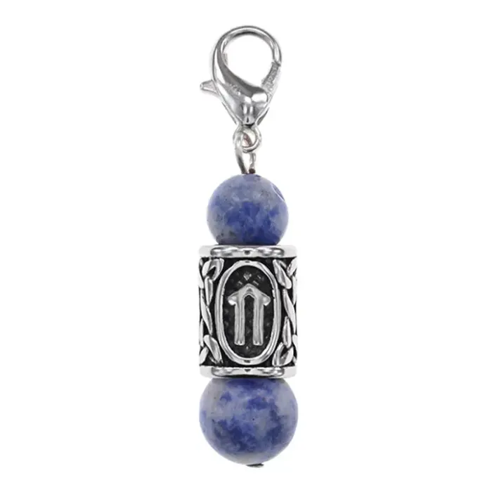 Брелок-амулет с руной Ветер из нержавеющей стали, Содалит BKC1-17