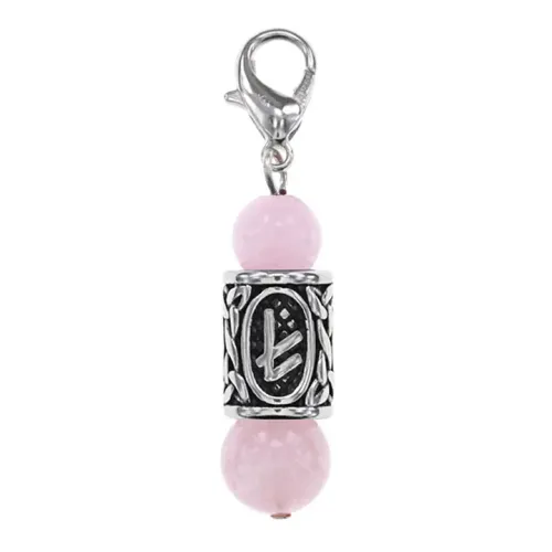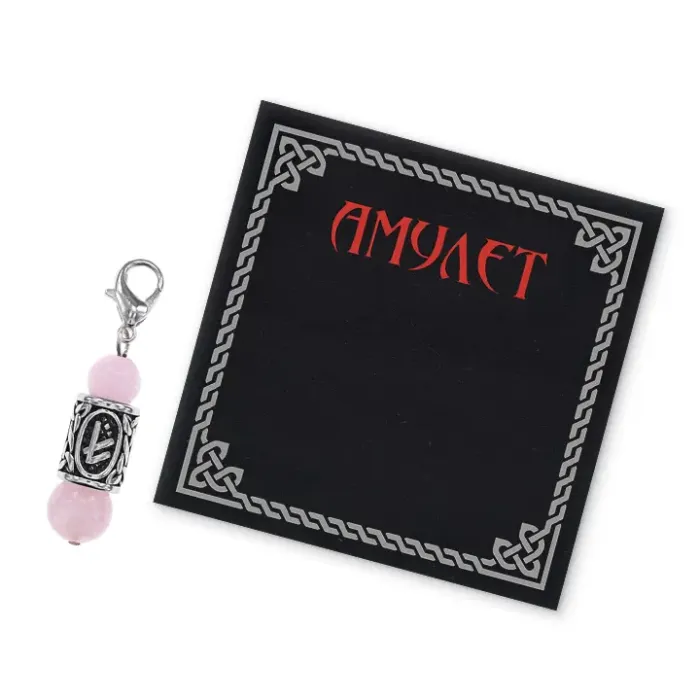Брелок-амулет с руной Берегиня из нержавеющей стали и розового кварца.