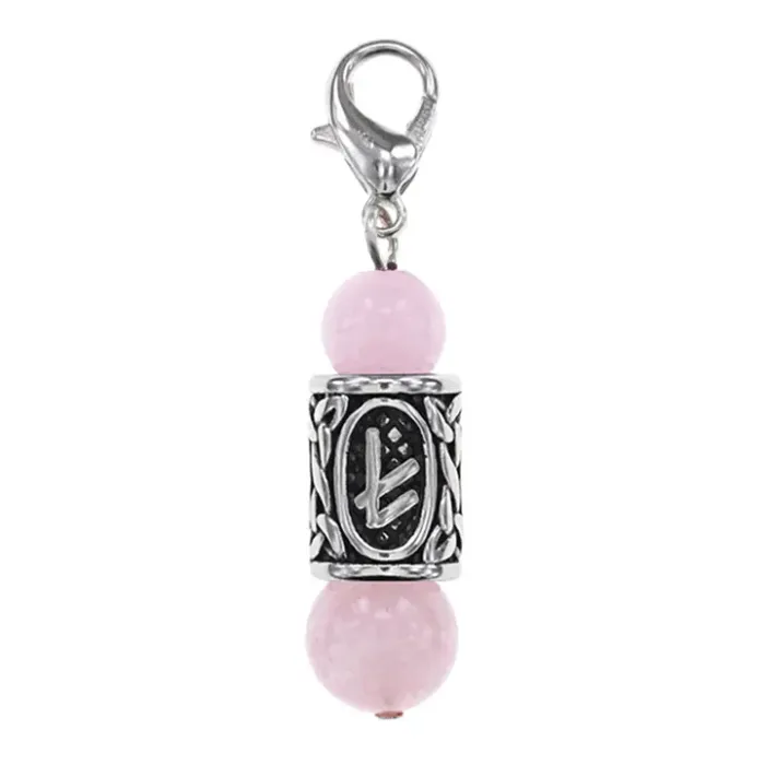 Брелок-амулет с руной Берегиня из нержавеющей стали, Розовый кварц BKC1-19