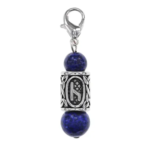 Брелок-амулет с руной Уд из нержавеющей стали с натуральным лазуритом.
