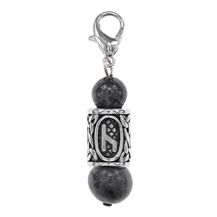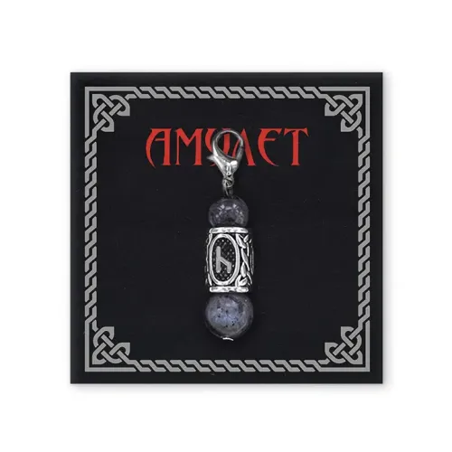 Брелок-амулет с руной Уд из нержавеющей стали и натурального камня лабрадор.