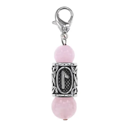 Брелок-амулет с руной Леля из нержавеющей стали, Розовый кварц BKC1-24