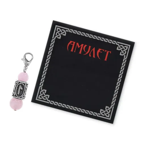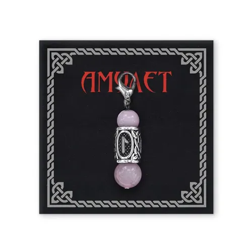 Брелок-амулет с руной Леля из нержавеющей стали, украшенный натуральным розовым кварцем.
