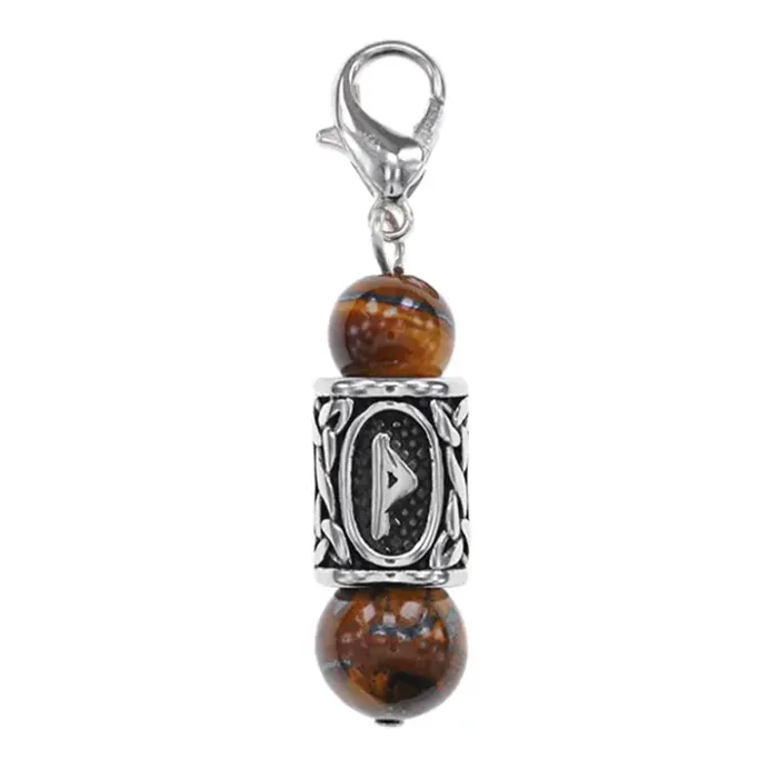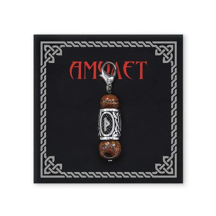 Материал и изготовление: Руническая бусина из нержавеющей стали. В оформлении использован натуральный камень Тигровый глаз.