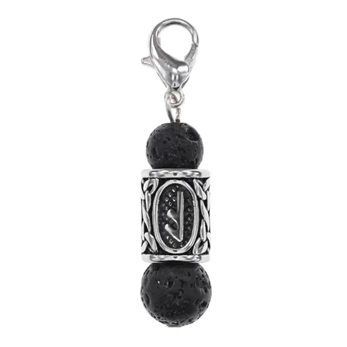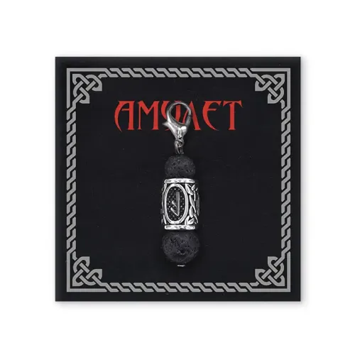 Брелок-амулет с руной Есть из нержавеющей стали и камня лава.