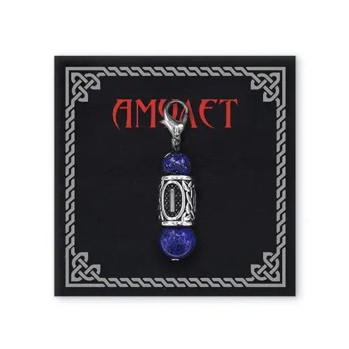Брелок-амулет с руной Исток из нержавеющей стали, Лазурит BKC1-31