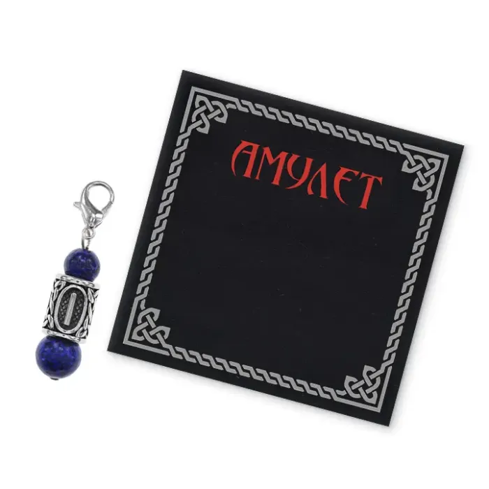 Брелок-амулет с руной Исток. Изготовлен из нержавеющей стали, украшен натуральным лазуритом.