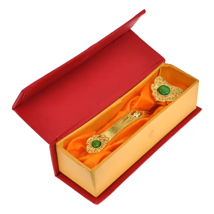 Сувенирный жезл Руи — это не только стильный элемент декора, но и символ удачи и благополучия. Изготовленный из металла с покрытием под золото, этот жезл украшен вставкой из кошачьего глаза, что придаёт ему особую элегантность. Размеры изделия составляют 10х2,5х2 см, а в комплекте предусмотрена подарочная картонная коробочка размером 12х4х3 см. Такой сувенир станет отличным подарком для ценителей уникальных вещей и привнесет атмосферу роскоши в любой интерьер.