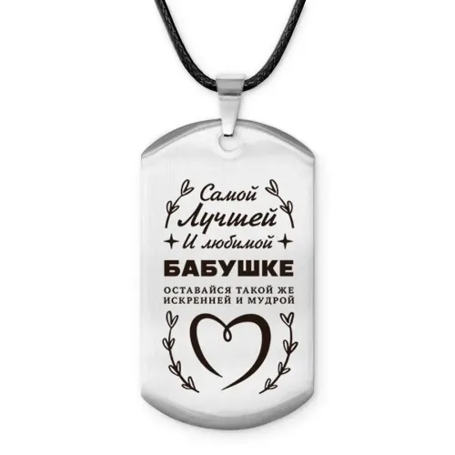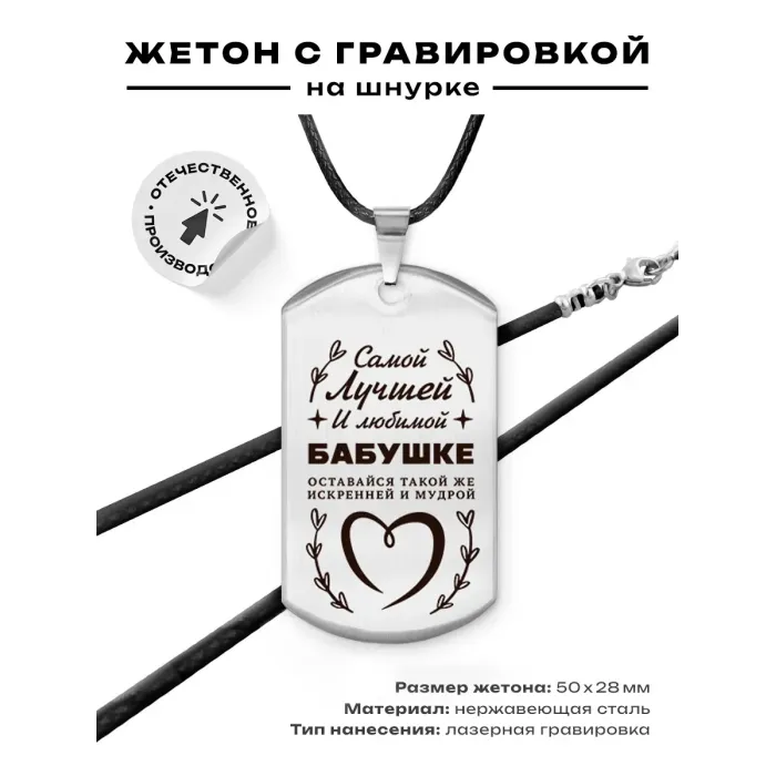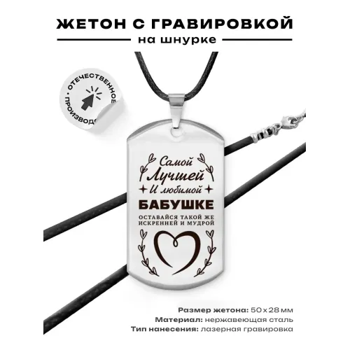 Брелок-жетон с гравировкой «Самой лучшей бабушке». Изготовлен из нержавеющей стали.