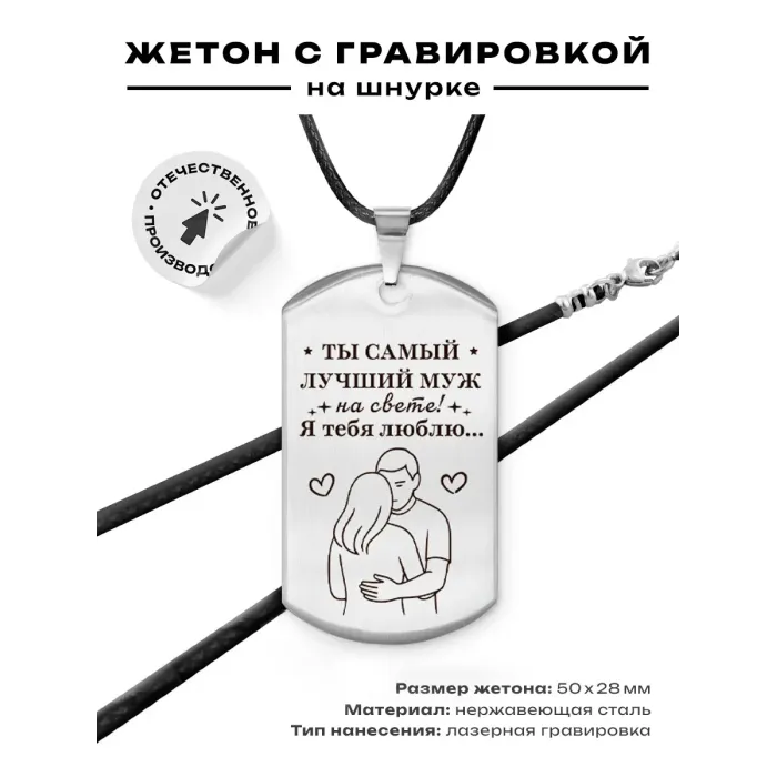 Размеры и комплектация: Размер жетона 50х28 мм. В комплекте шнурок с застёжкой. Упаковка — прозрачный пакет.