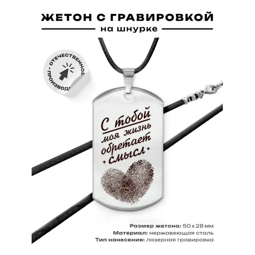 Размеры и комплектация: Размер жетона 50х28 мм. Комплектуется шнурком с застёжкой. Упаковка — прозрачный пакет.