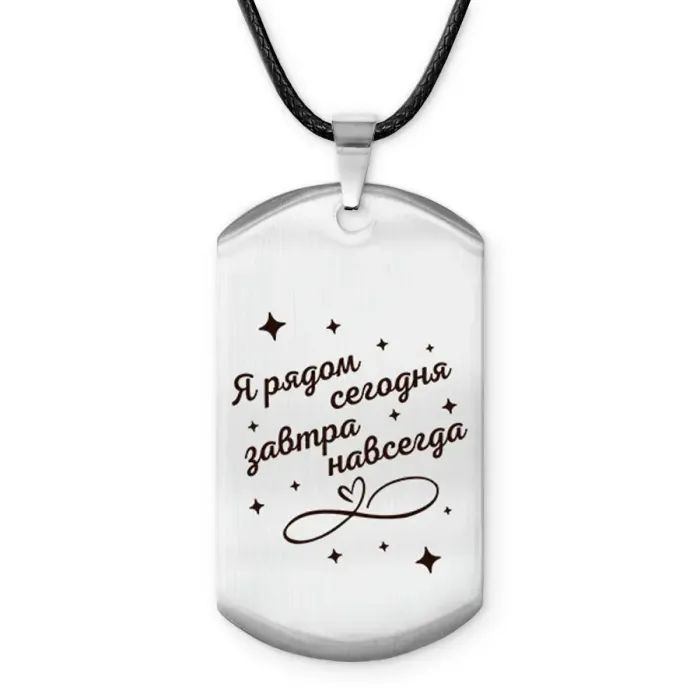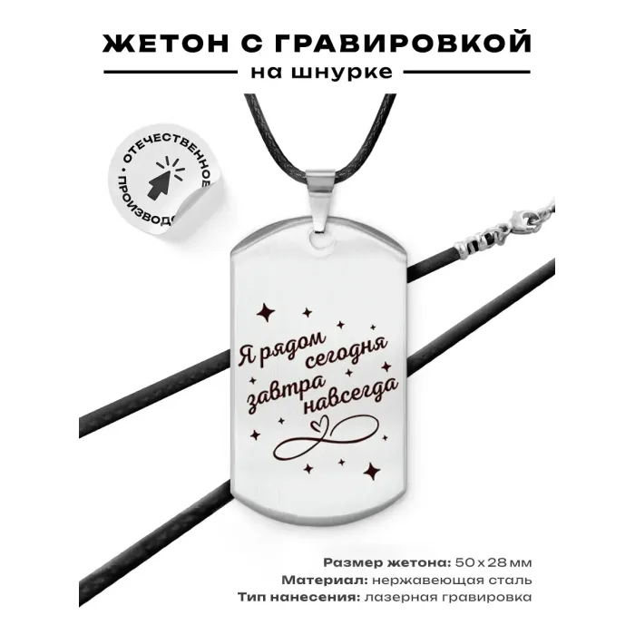 Размеры и комплектация: Размер жетона 50х28 мм. В комплекте шнурок с застёжкой. Упаковка — прозрачный пакет.