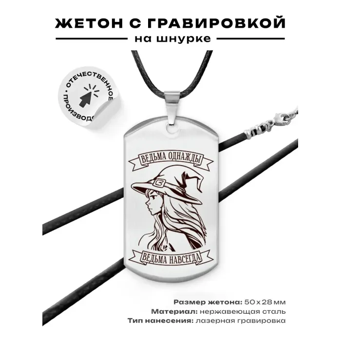 Размеры и комплектация: Размер жетона 50х28 мм. В комплекте шнурок с застёжкой. Упаковка — прозрачный пакет.