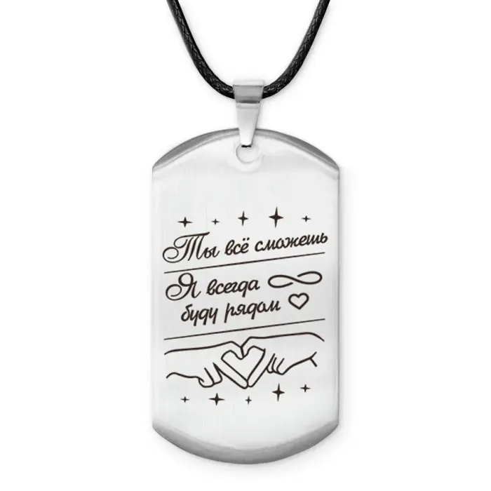 Брелок-жетон из полированной нержавеющей стали с гравировкой.