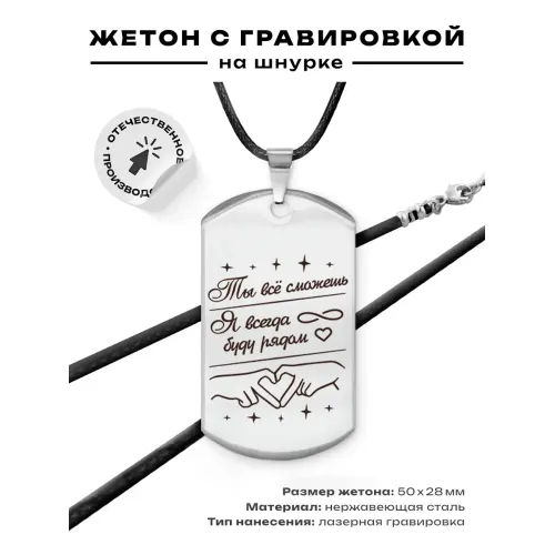 Размеры и комплектация: Размеры 50х28 мм. В комплекте шнурок с застёжкой. Упаковка — прозрачный пакет.